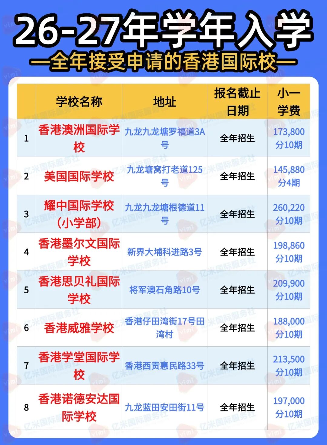 认准这些学校:英基esf学校、威雅学校、犹太教国际学校、斯坦福(要有香港亲属做担保人)、茵维特、美国国际学校;