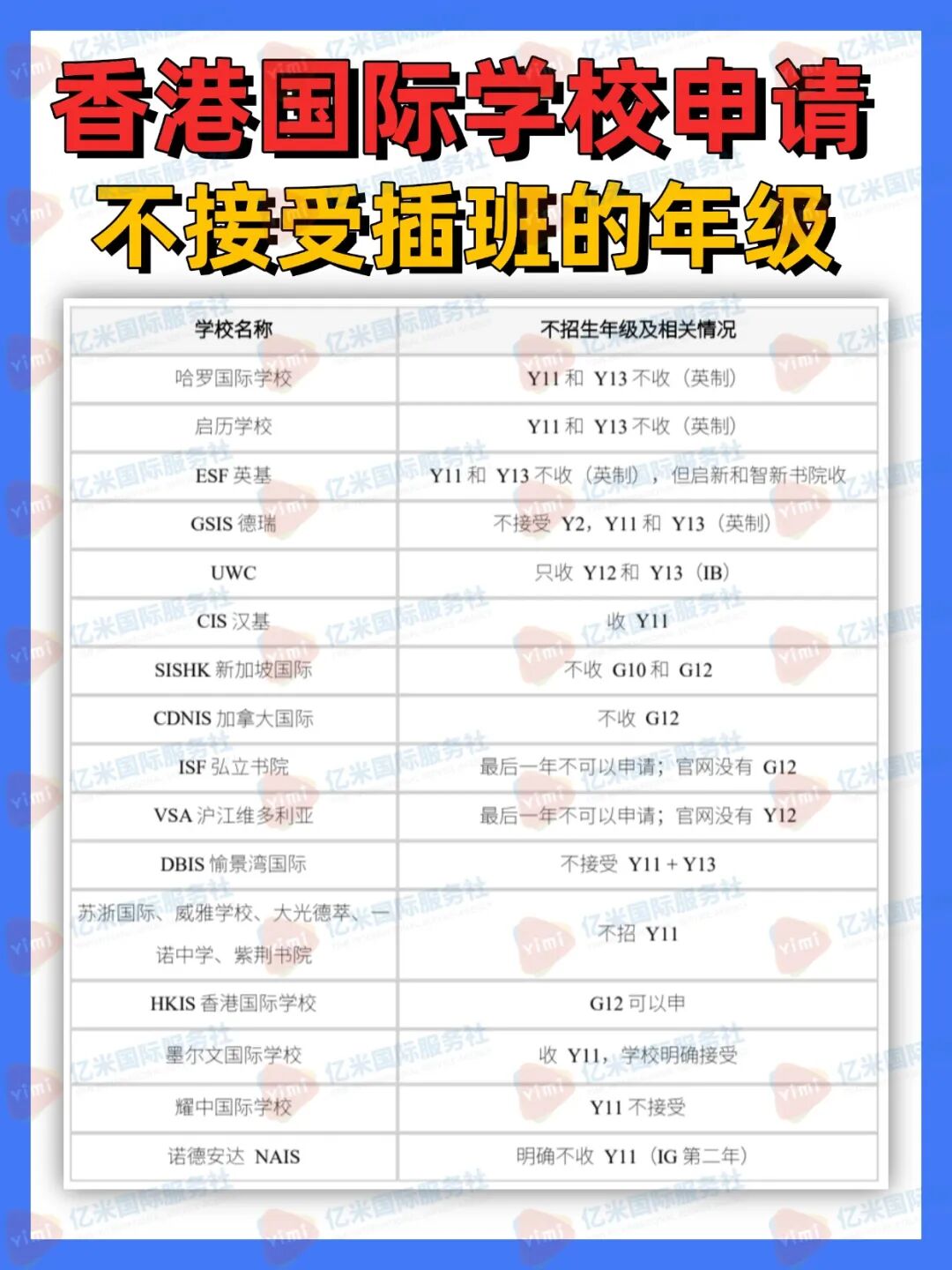 汉基:Y7-Y13,11月初截止HKIS:G6-G12:11月1日截止弘立:Y6-Y11:11月24日截止加拿大国际:N班:11月30日截止